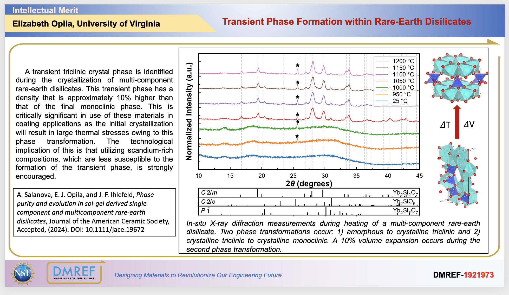 A transient triclinic crystal phase is identified during the crystallization of multi-component rare-earth disilicates. This transient phase has a density that is approximately 10% higher than that of the final monoclinic phase. This is critically significant in use of these materials in coating applications as the initial crystallization will result in large thermal stresses owing to this phase transformation. The technological implication of this is that utilizing scandium-rich compositions, which are less susceptible to the formation of the transient phase, is strongly encouraged.