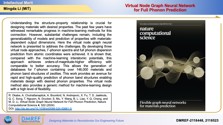 Understanding the structure–property relationship is crucial for designing materials with desired properties. The past few years have witnessed remarkable progress in machine-learning methods for this connection. However, substantial challenges remain, including the generalizability of models and prediction of properties with materials-dependent output dimensions. Here the virtual node graph neural network is presented to address the challenges.