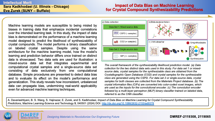 Machine learning models are susceptible to being misled by biases in training data that emphasize incidental correlations over the intended learning task. In this study, the impact of data bias is demonstrated on the performance of a machine learning model designed to predict the likelihood of synthesizability of crystal compounds. The model performs a binary classification on labeled crystal samples.