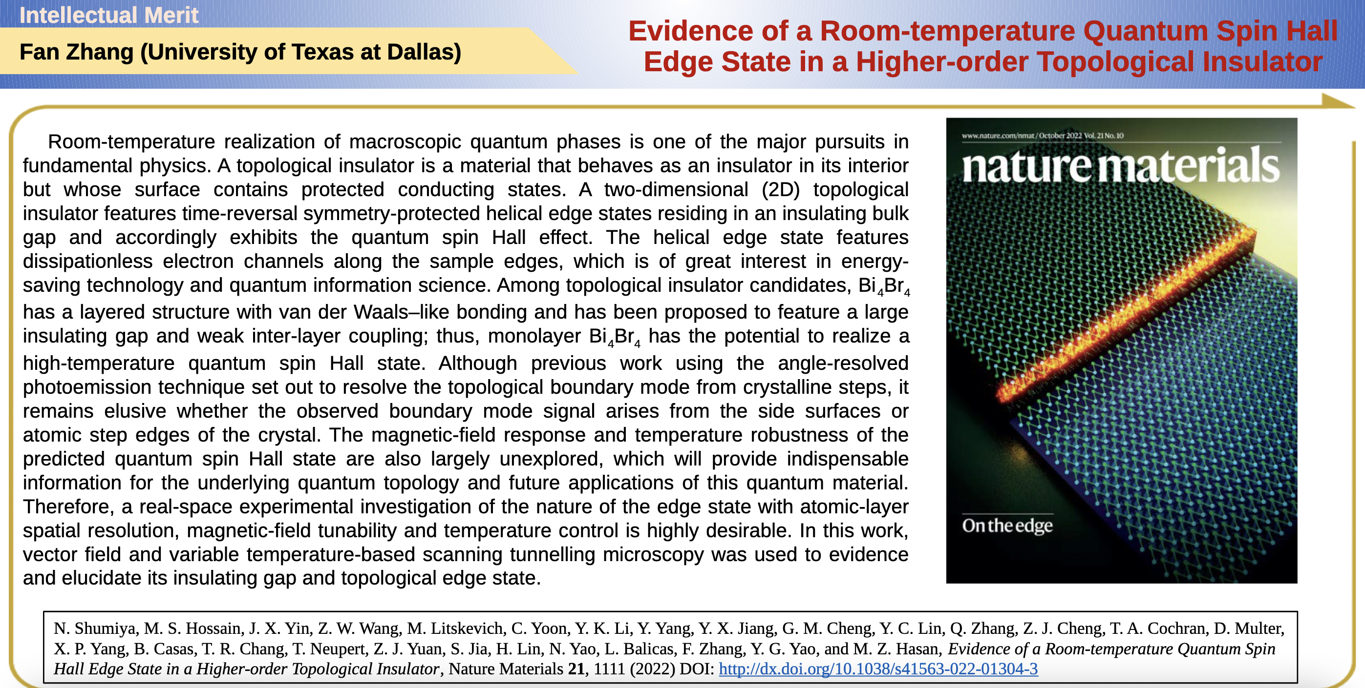 Room-temperature realization of macroscopic quantum phases is one of the major pursuits in fundamental physics. A topological insulator is a material that behaves as an insulator in its interior but whose surface contains protected conducting states. A two-dimensional (2D) topological insulator features time-reversal symmetry-protected helical edge states residing in an insulating bulk gap and accordingly exhibits the quantum spin Hall effect. The helical edge state features dissipationless electron channels along the sample edges, which is of great interest in energy-saving technology and quantum information science. Among topological insulator candidates, Bi4Br4has a layered structure with van der Waals–like bonding and has been proposed to feature a large insulating gap and weak inter-layer coupling; thus, monolayer Bi4Br4 has the potential to realize a high-temperature quantum spin Hall state. Although previous work using the angle-resolved photoemission technique set out to resolve the topological boundary mode from crystalline steps, it remains elusive whether the observed boundary mode signal arises from the side surfaces or atomic step edges of the crystal. The magnetic-field response and temperature robustness of the predicted quantum spin Hall state are also largely unexplored, which will provide indispensable information for the underlying quantum topology and future applications of this quantum material. Therefore, a real-space experimental investigation of the nature of the edge state with atomic-layer spatial resolution, magnetic-field tunability and temperature control is highly desirable. In this work, vector field and variable temperature-based scanning tunnelling microscopy was used to evidence and elucidate its insulating gap and topological edge state.