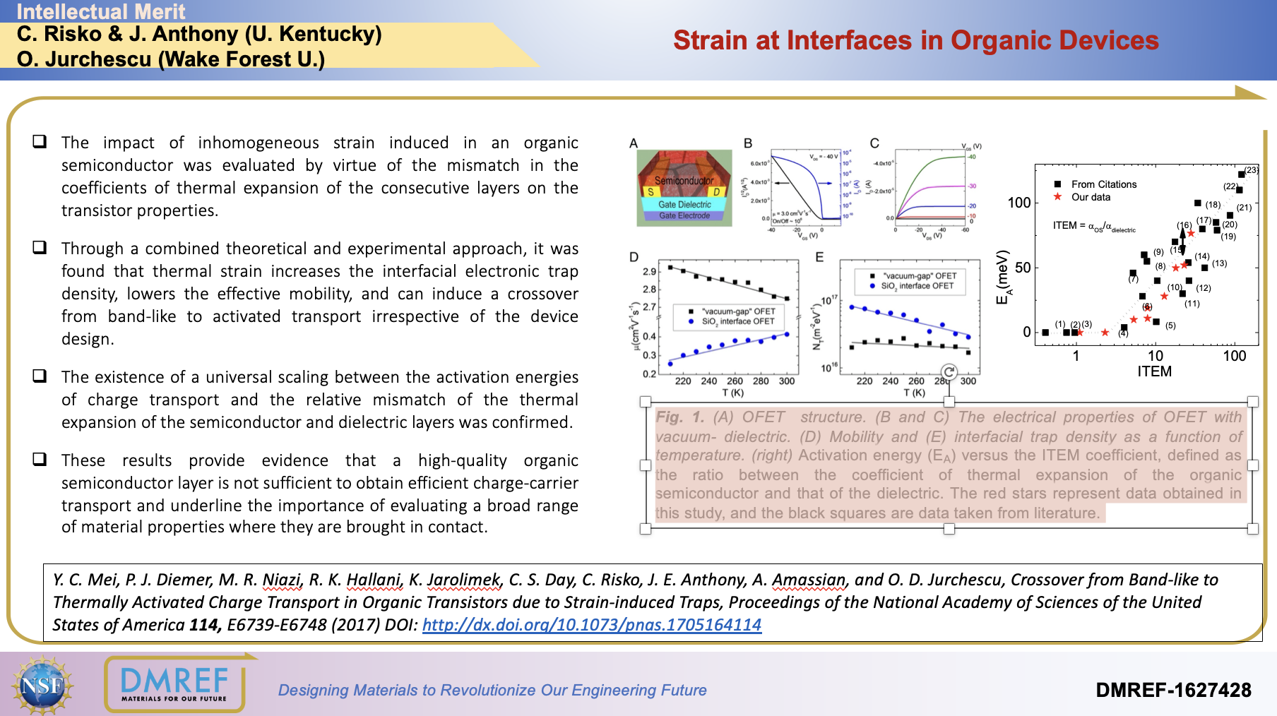 - The existence of a universal scaling between the activation energies of charge transport and the relative mismatch of the thermal expansion of the semiconductor and dielectric layers was confirmed.
