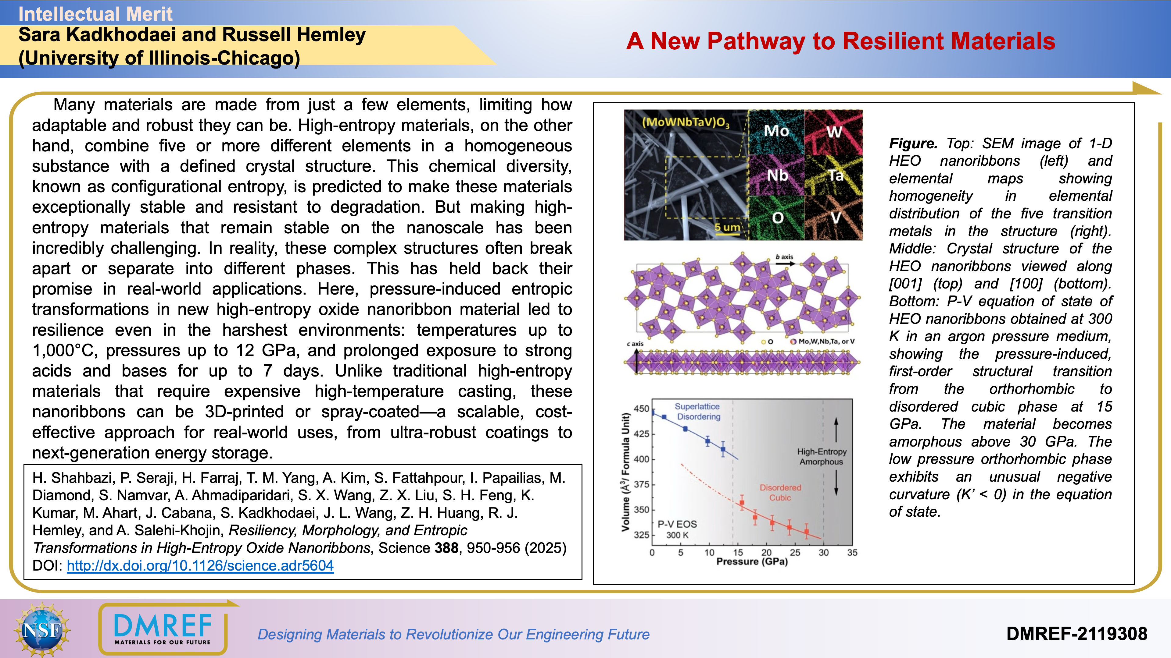 Here, pressure-induced entropic transformations in new high-entropy oxide nanoribbon material led to resilience even in the harshest environments: temperatures up to 1,000°C, pressures up to 12 GPa, and prolonged exposure to strong acids and bases for up to 7 days. Unlike traditional high-entropy materials that require expensive high-temperature casting, these nanoribbons can be 3D-printed or spray-coated—a scalable, cost-effective approach for real-world uses, from ultra-robust coatings to next-generation energy storage.