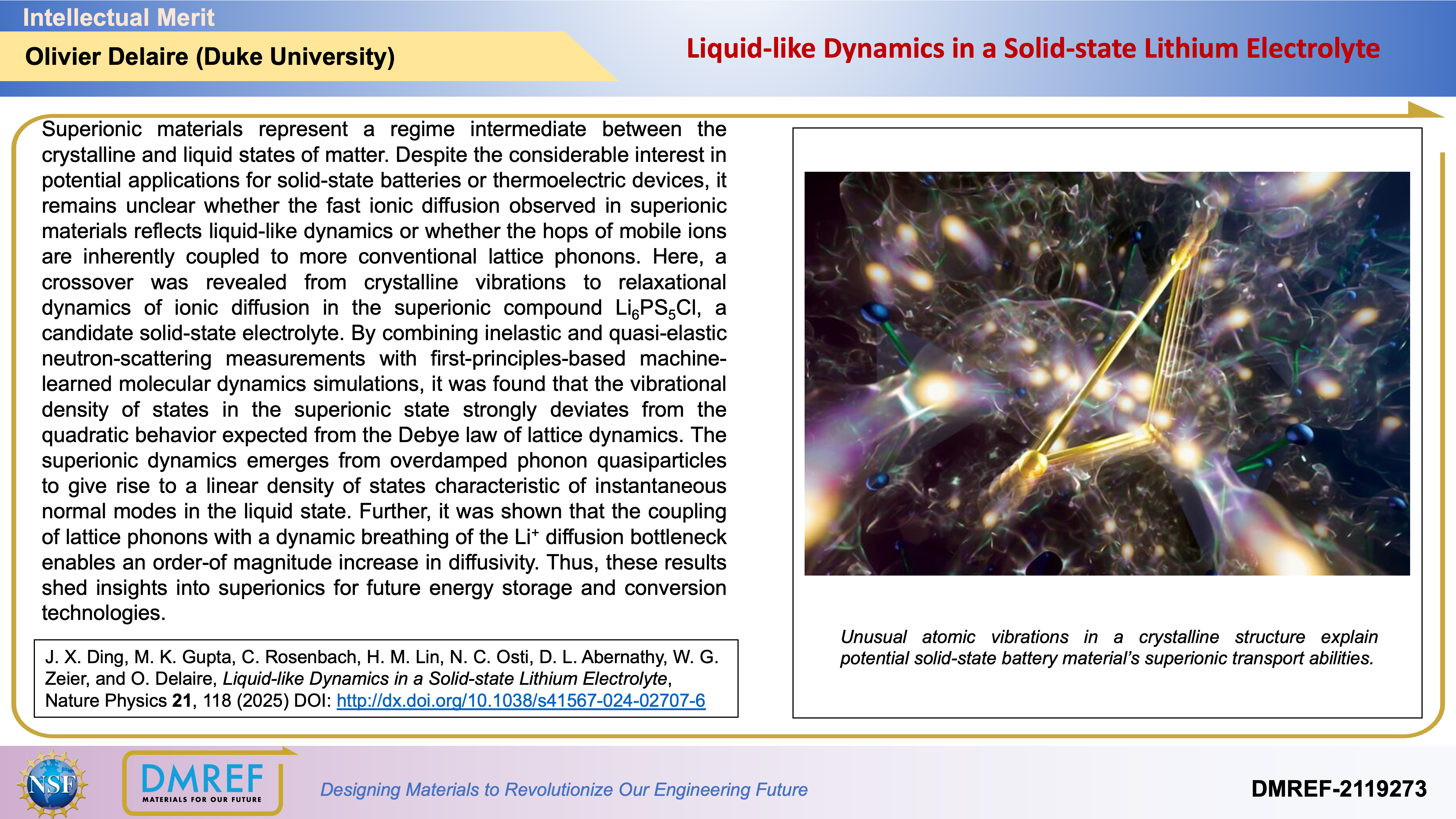 The superionic dynamics emerges from overdamped phonon quasiparticles to give rise to a linear density of states characteristic of instantaneous normal modes in the liquid state. Further, it was shown that the coupling of lattice phonons with a dynamic breathing of the Li+ diffusion bottleneck enables an order-of magnitude increase in diffusivity. Thus, these results shed insights into superionics for future energy storage and conversion technologies.