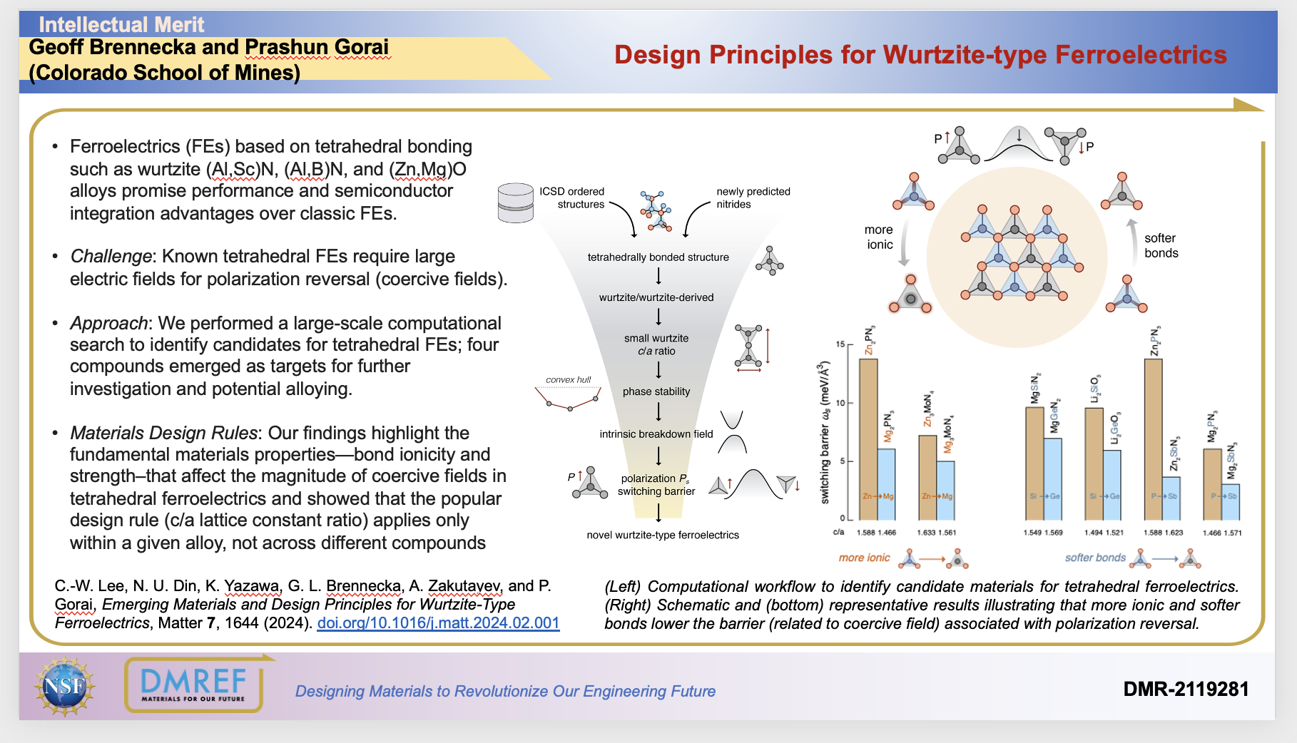 •Materials Design Rules: Our findings highlight the fundamental materials properties—bond ionicity and strength–that affect the magnitude of coercive fields in tetrahedral ferroelectrics and showed that the popular design rule (c/a lattice constant ratio) applies only within a given alloy, not across different compounds